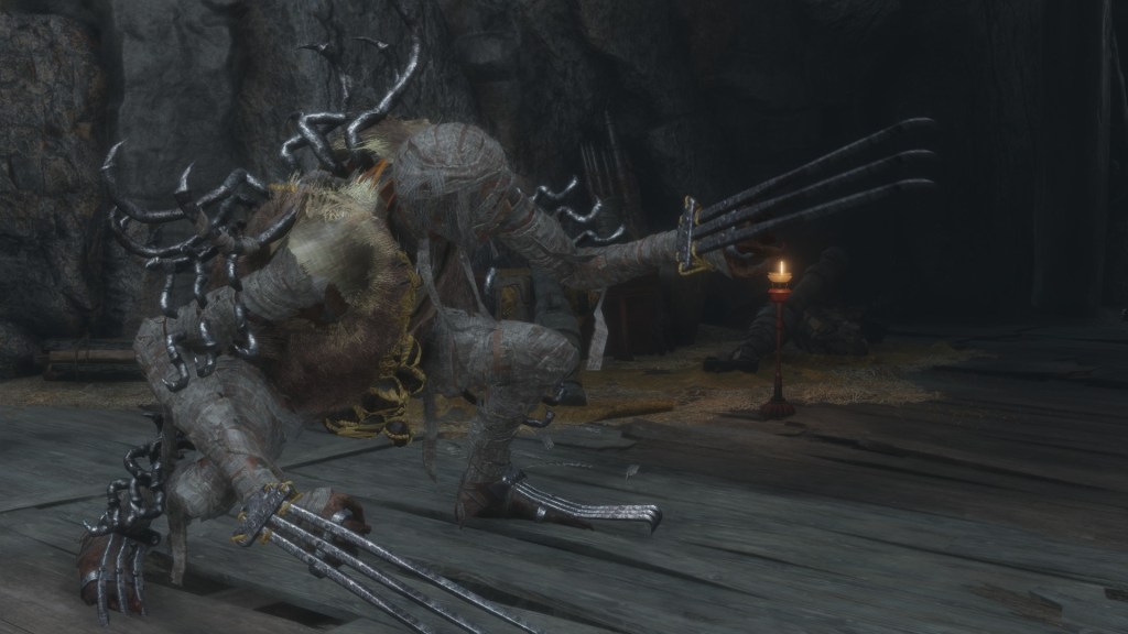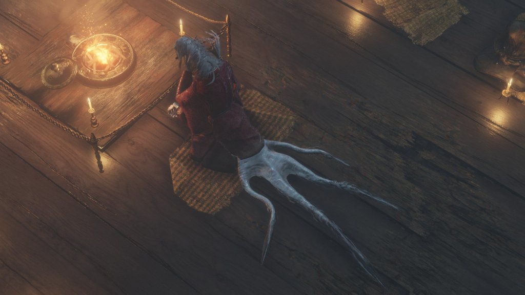 Questo strano boss secondario lo incontreremo per la prima volta nelle segrete di Ashina e il primo istinto che avremo sarà quello di lasciarlo perdere, visto che non ostacola in alcun modo il nostro cammino. Affrontare questo boss all’inizio è difatti altamente sconsigliabile, ma a gioco avanzato è utile fargli visita, in quanto ci dropperà un oggetto molto importante, il “Cerimonial Tanto”, un pugnale che ci consente di convertire i nostri punti salute in emblemi spiritici.